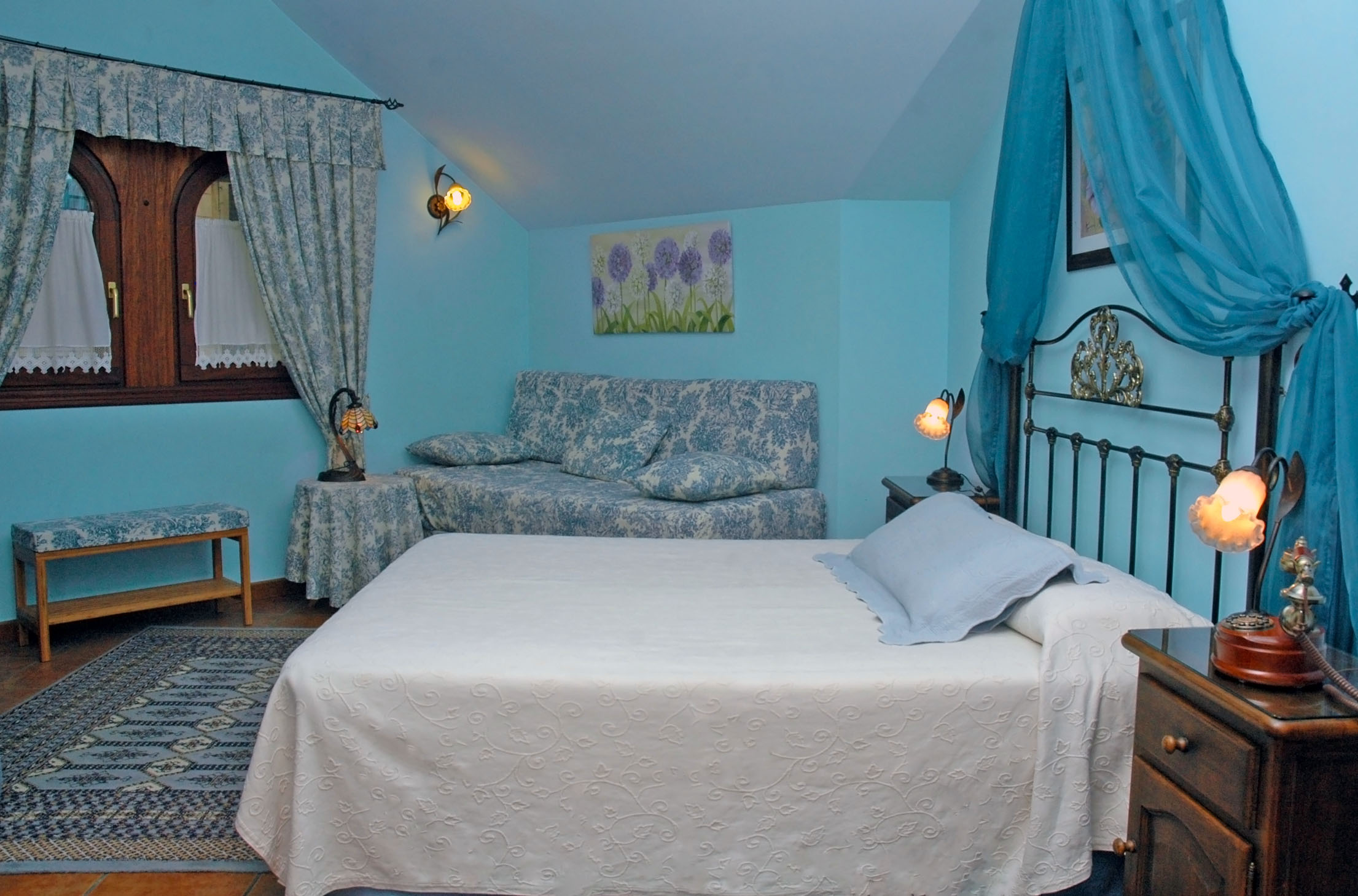 Habitación de 19 metros cuadrados con cama de 150cm y baño completo de más de 6 metros cuadrados con bañera de hidromasaje. Situada en la segunda planta de edificio y con vistas a la Iglesia de San Pantaleón y las Tetas de Liérganes.